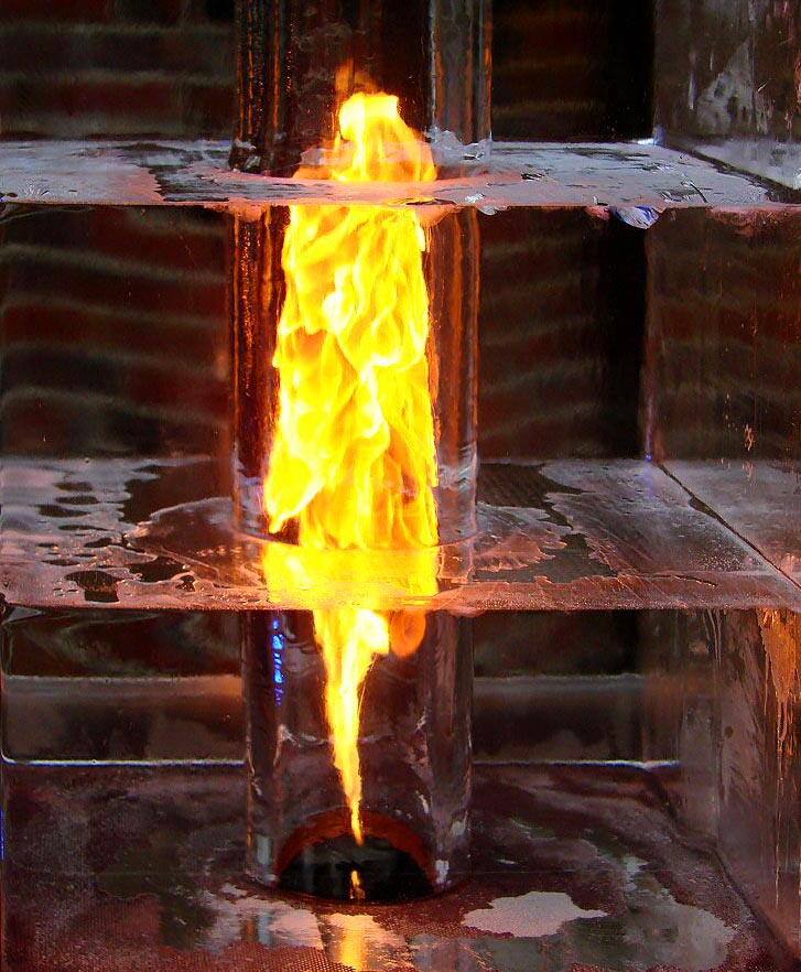 Brennende Eisskulpturen? Flammen aus dem Eis? Aber sicher!
