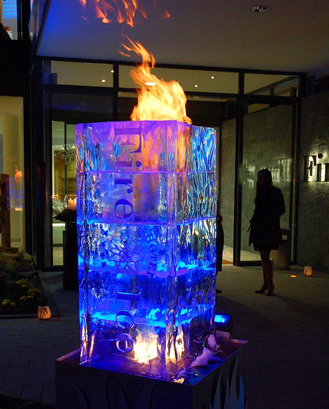 Das magische Lichtspiel – Spektakuläres Effekt-Highlight… eine brandneues Produkt des Eisdesigners, das Ihre Gäste sicherlich so noch nicht erlebt haben. Lassen sie die Betrachter eintauchen in ein magisches Lichtspiel – heiß und kalt zugleich. Wir bieten Ihnen ein spektakuläres Effekt-Highlight, mit sicher in Eis gebändigtem Feuer zum Anfassen.